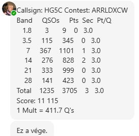 HA5AX Zsolt a HG9X állomást távvezérelve SO LP AB CW kategóriában indult, tapasztalatait és kiváló eredményét már közzétette a levelezőlistán.
