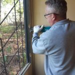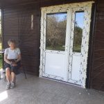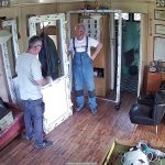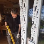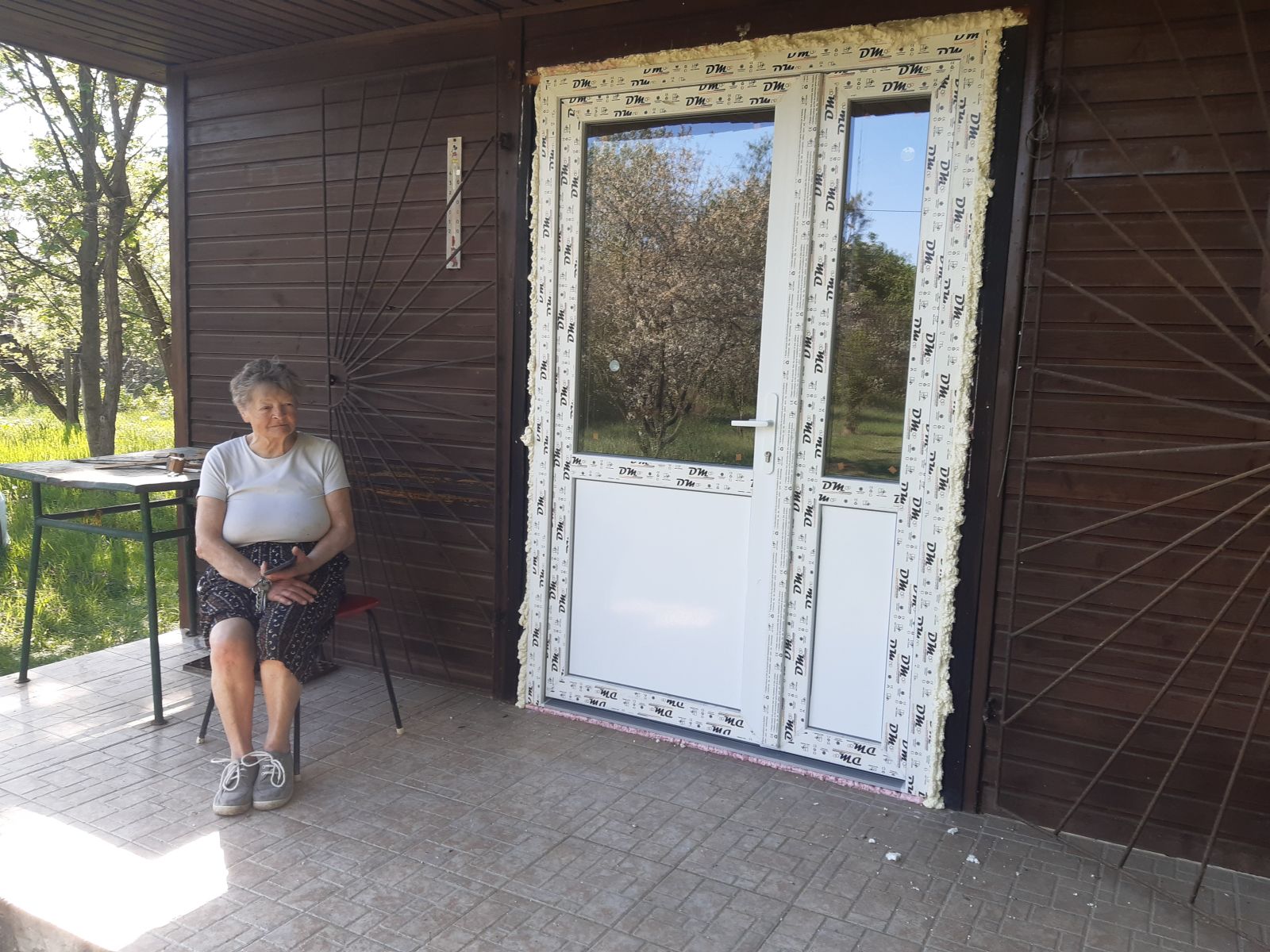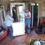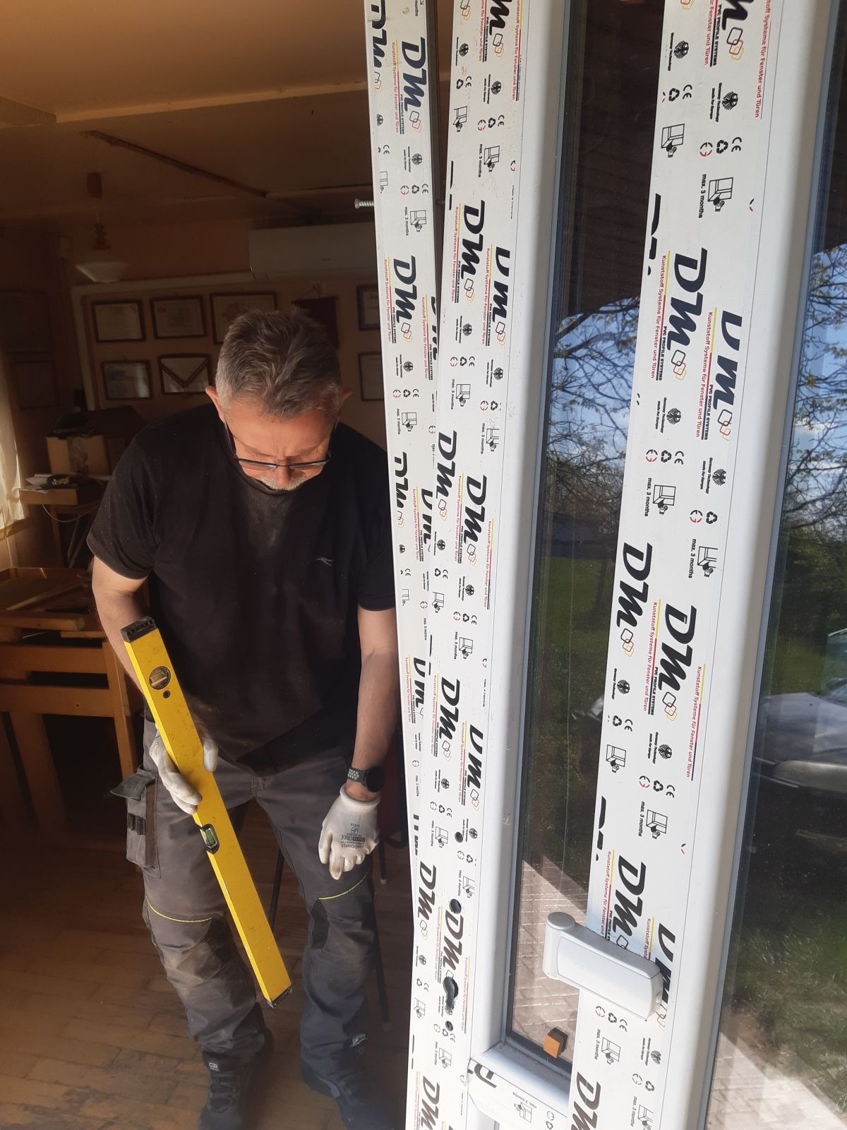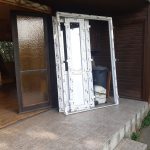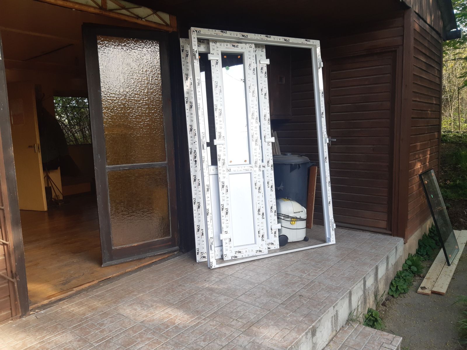 Az üveges részeket ki kellet venni a keretek rögzítéséhez, aztán ha megkeményedett a purhab, visszaszerelni. Az ajtó keretének beállítása volt a legnehezebb. Végre azt is össze lehetett rakni és bepasszítani, hogy szépen csukódjon, záródjon.