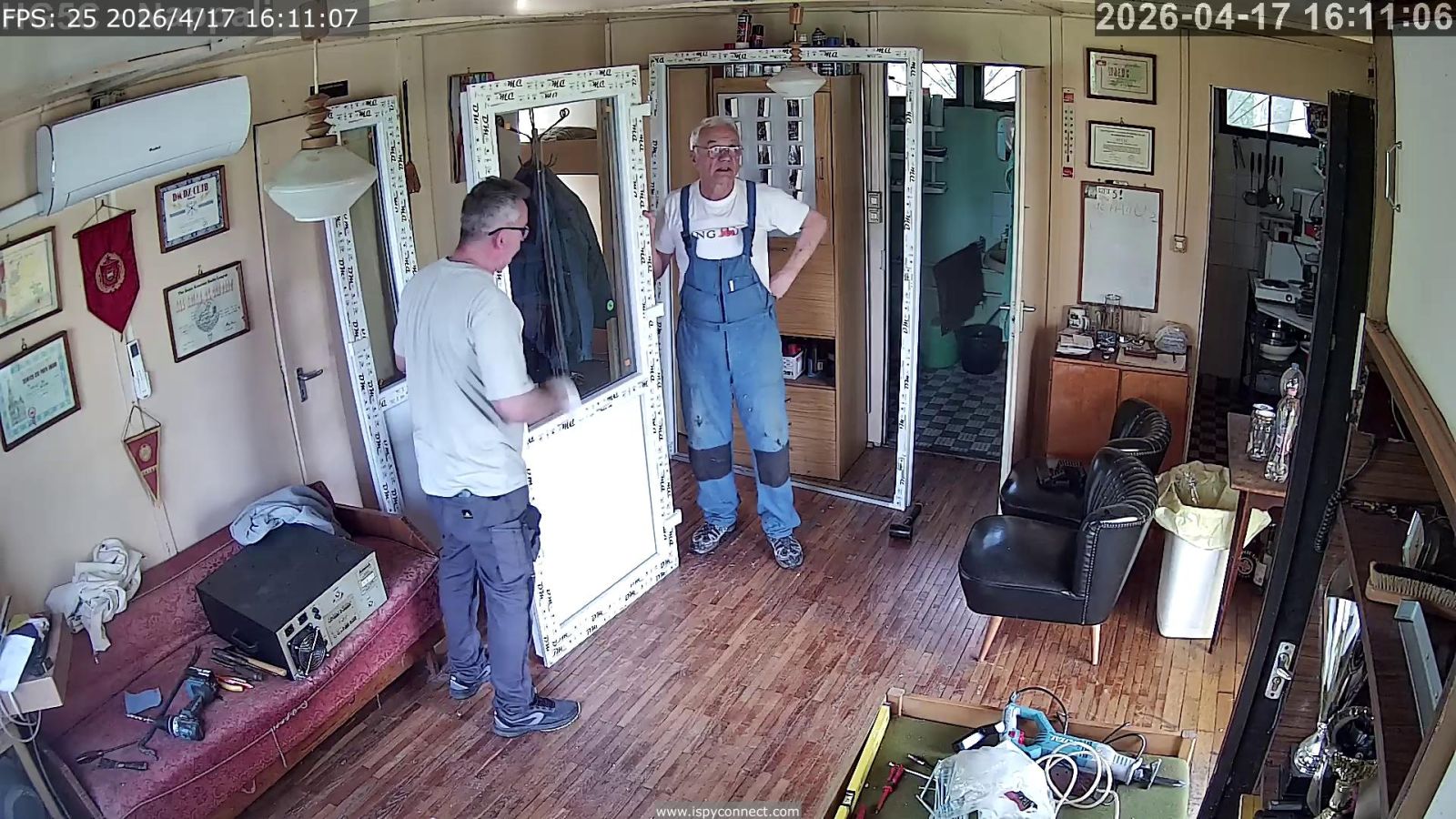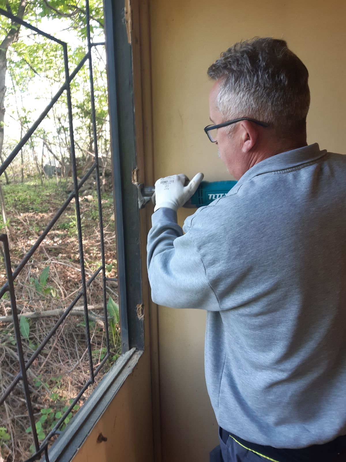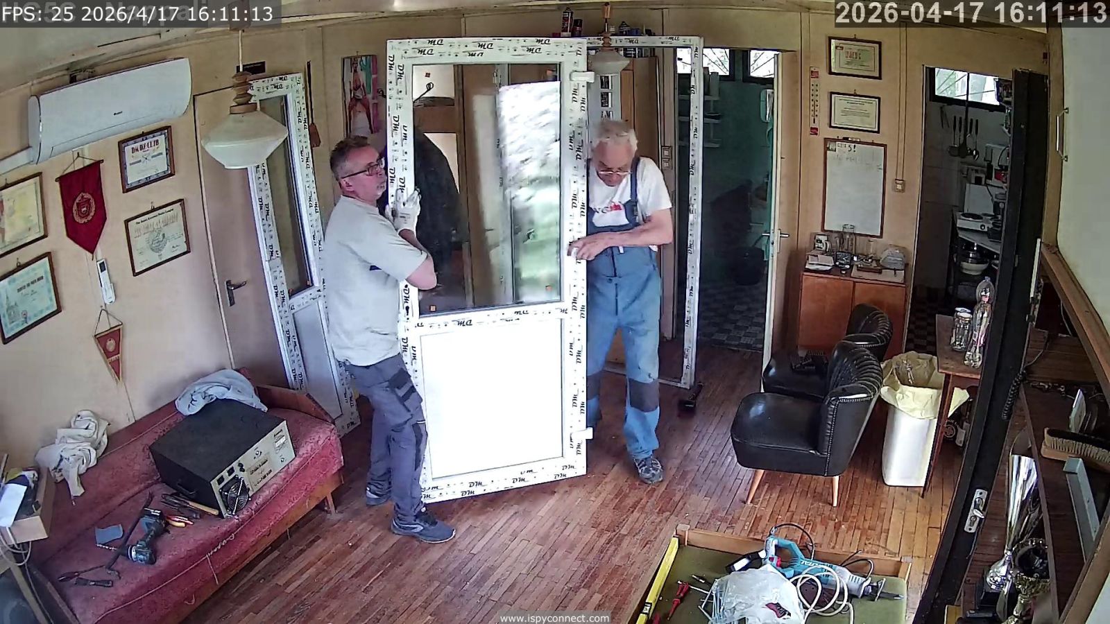 Karlovics Pista régi kábelezős kolléga végezte és bele is fáradt rendesen a nap végére. A beerősítés ékeléssel és ” vízimérték ” segítségével kezdődött. A végleges rögzítés hosszú facsavarokkal és purhabbal történt. A péntekbe még az adószobai ablak betétele fért bele.
