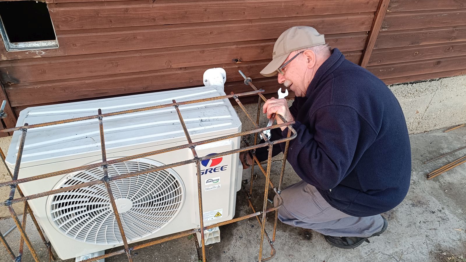 Úgy döntöttünk, hogy biztos-ami-biztos alapon egy ráccsal nehezítjük meg az új klímaberendezés kültéri egységéhez való hozzáférést. A rács elkészült, legközelebb már csak festeni kell.