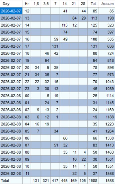 A terjedés lehetett volna jobb is, a párhuzamosan futó FOC verseny bezavart, mert sok amerikai és kanadai állomás volt este és hajnalban, de a nagy részük FOC-ozott és nem az EUDX-en indult.. Picivel több igényelt pont lett mint tavaly, de szinte ugyanúgy sikerült.